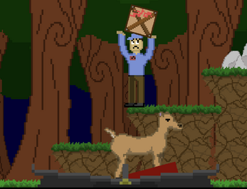 Cool platformer with a fun mechanic, would have loved to have dual controls but the one handed system is a fun challenge. Great premise and nice animations, love the angry deer! While the music needs to be developed, it still kind of works with the chaotic vibe of the game - good job!